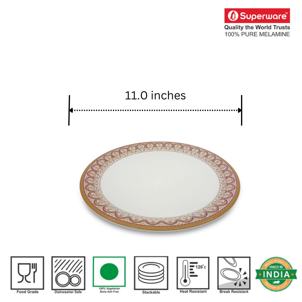 SUPERWARE | Pure Melamine | Dinner plate Set - Vintage Maroon (11.0") | 6 Nos. | Stain Free, Glazed Finish