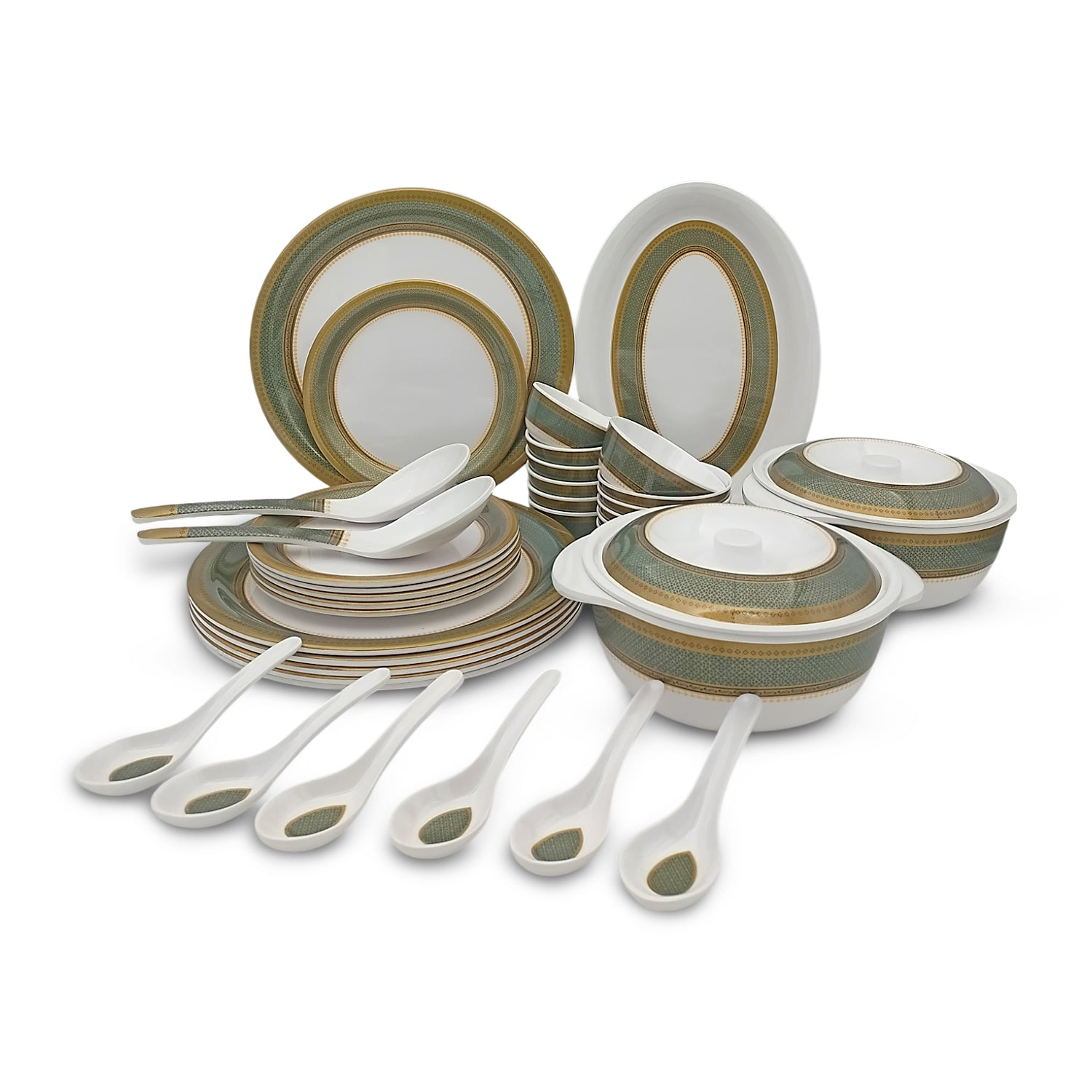 SUPERWARE, Pure Melamine | Dinner Set - Bridal-Green | Set Of 37 Pcs. | Stain Free, Glazed Finish