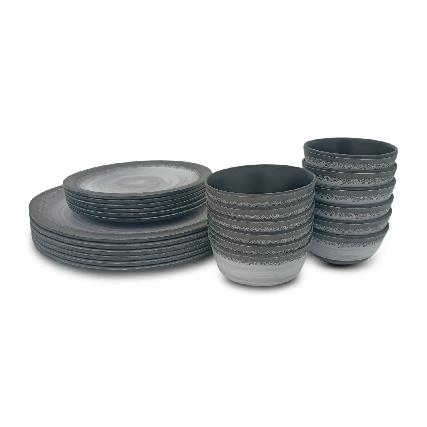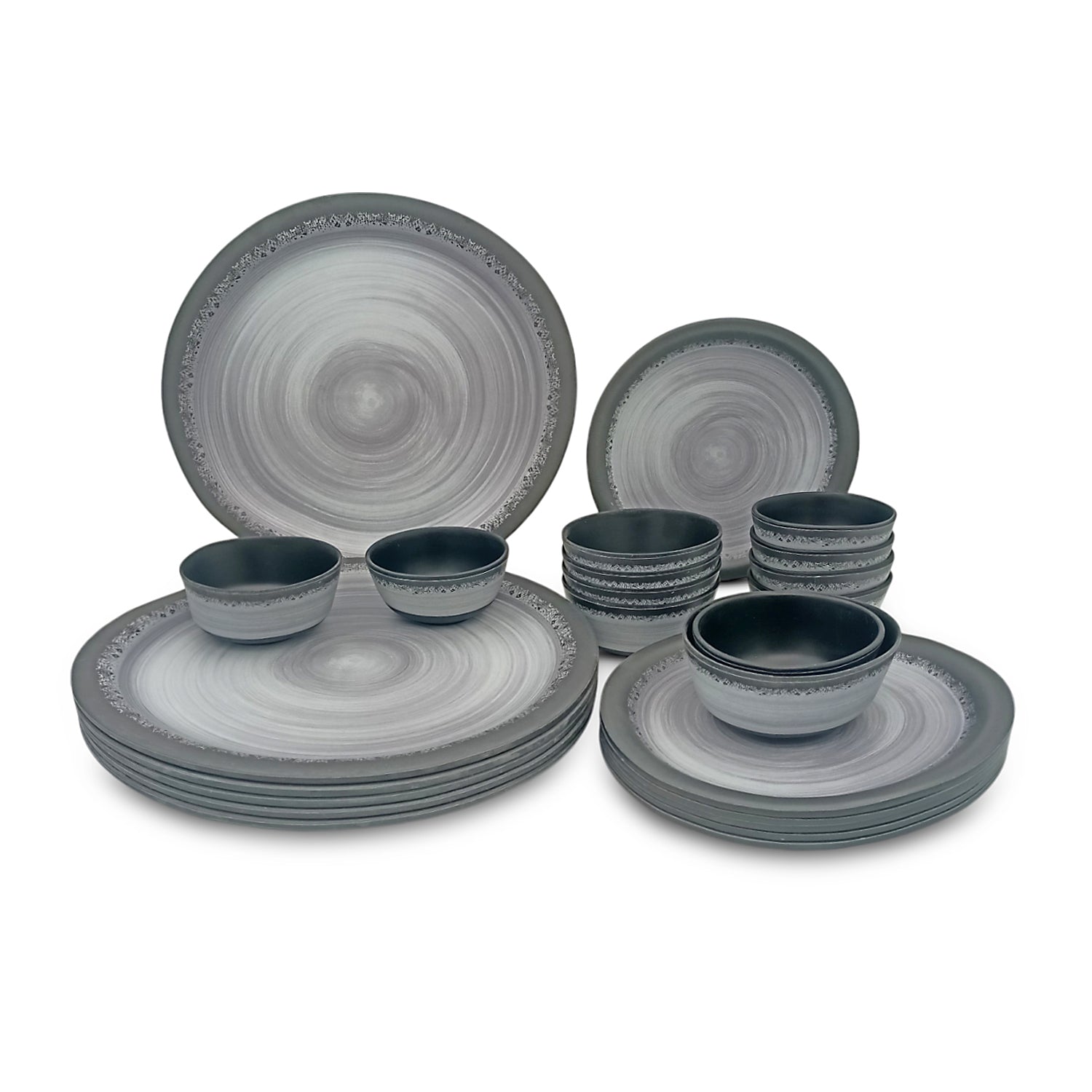 SUPERWARE, Pure Melamine | Dinner Set - Circular Black-MATT | Set Of 24 Pcs. | Stain Free, Glazed Finish