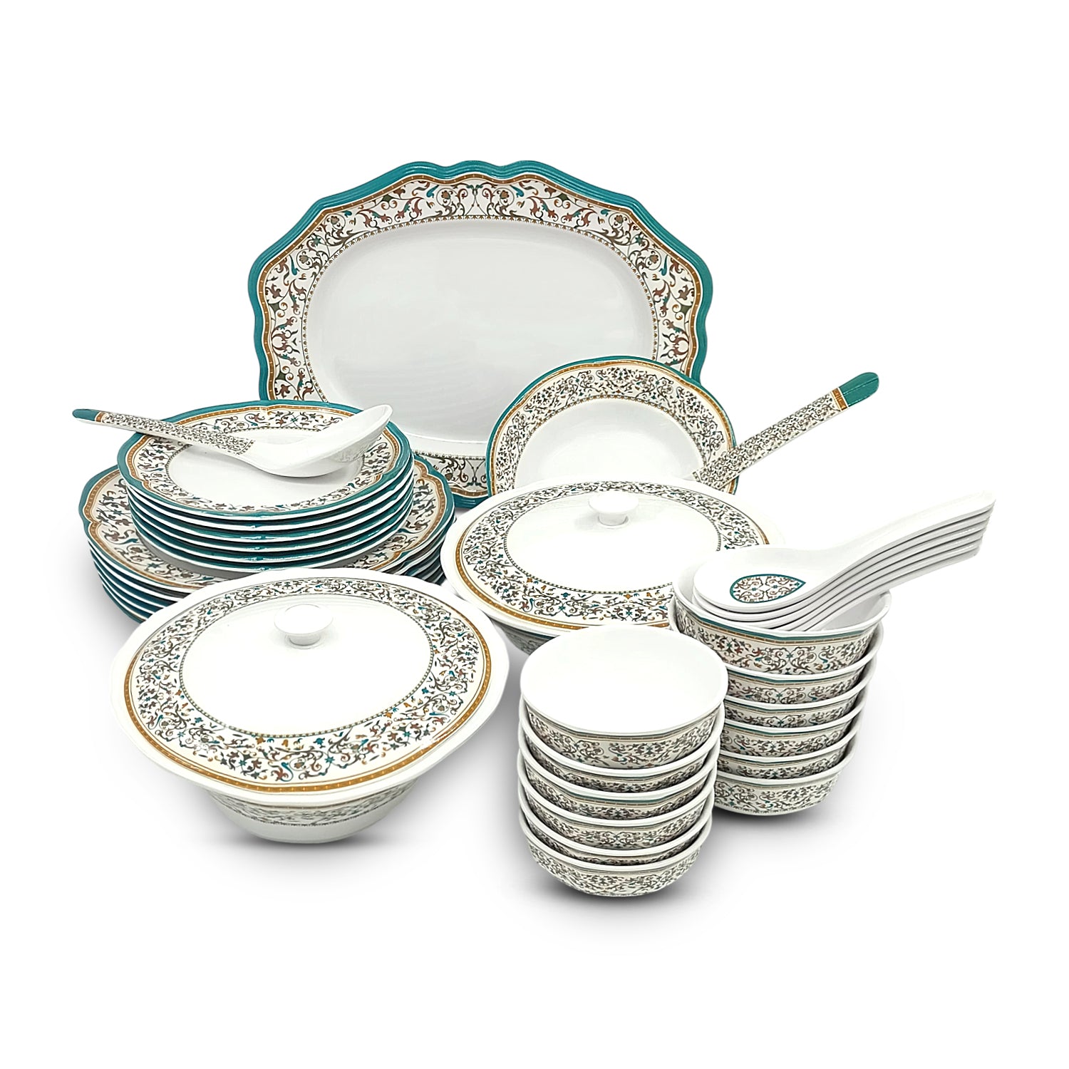 SUPERWARE | Pure Melamine | Dinner Set - GARDENIA AZURE | Set Of 38 Pcs. | Stain Free, Glazed Finish