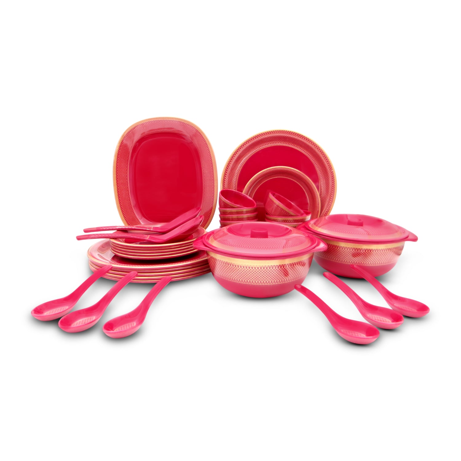 SUPERWARE, Pure Melamine | Dinner Set - Golden Glory Maroon | Set Of 37 Pcs. | Stain Free, Glazed Finish