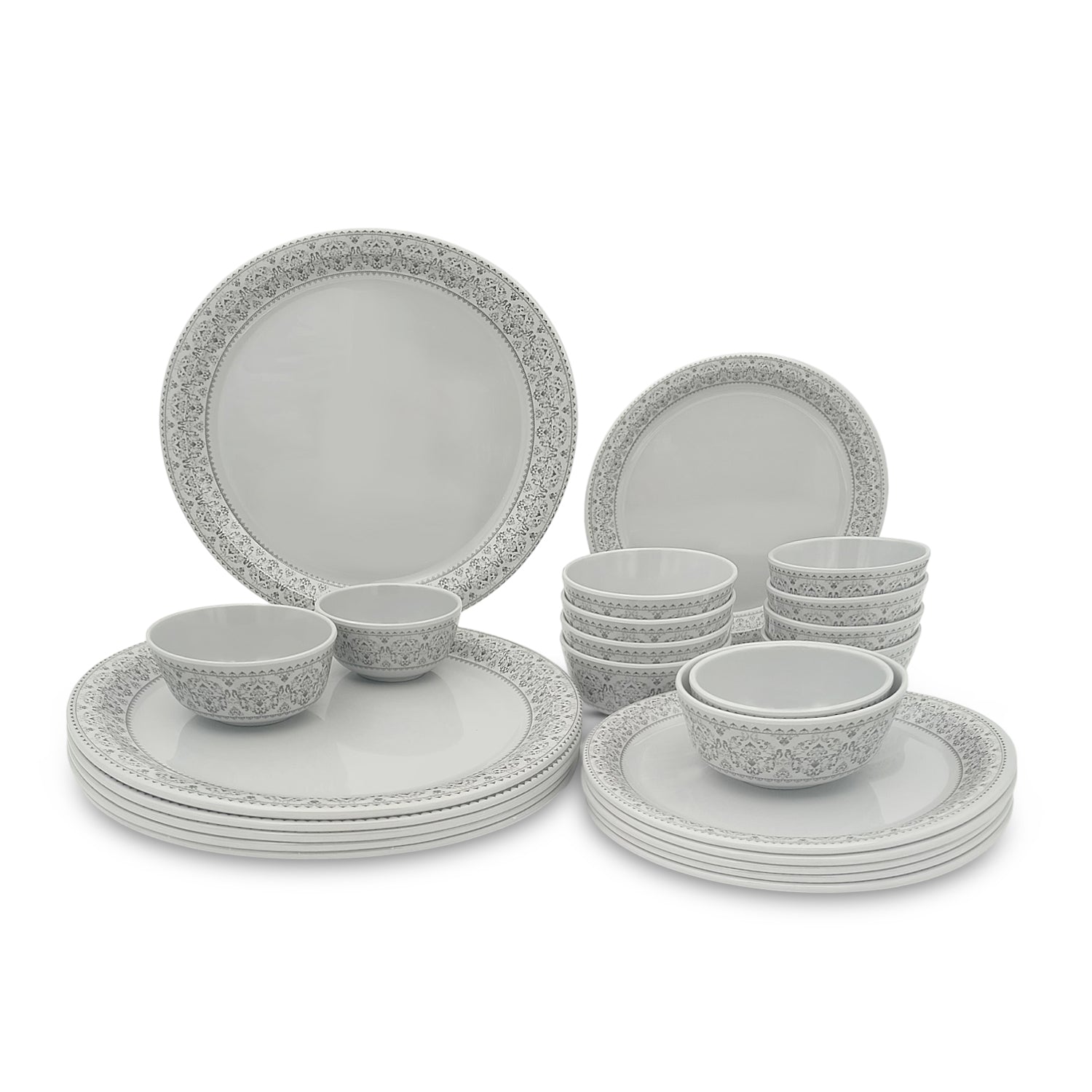 SUPERWARE | Pure Melamine | Dinner Set - Manila Gray Lava | Set Of 24 Pcs. | Stain Free, Glazed Finish