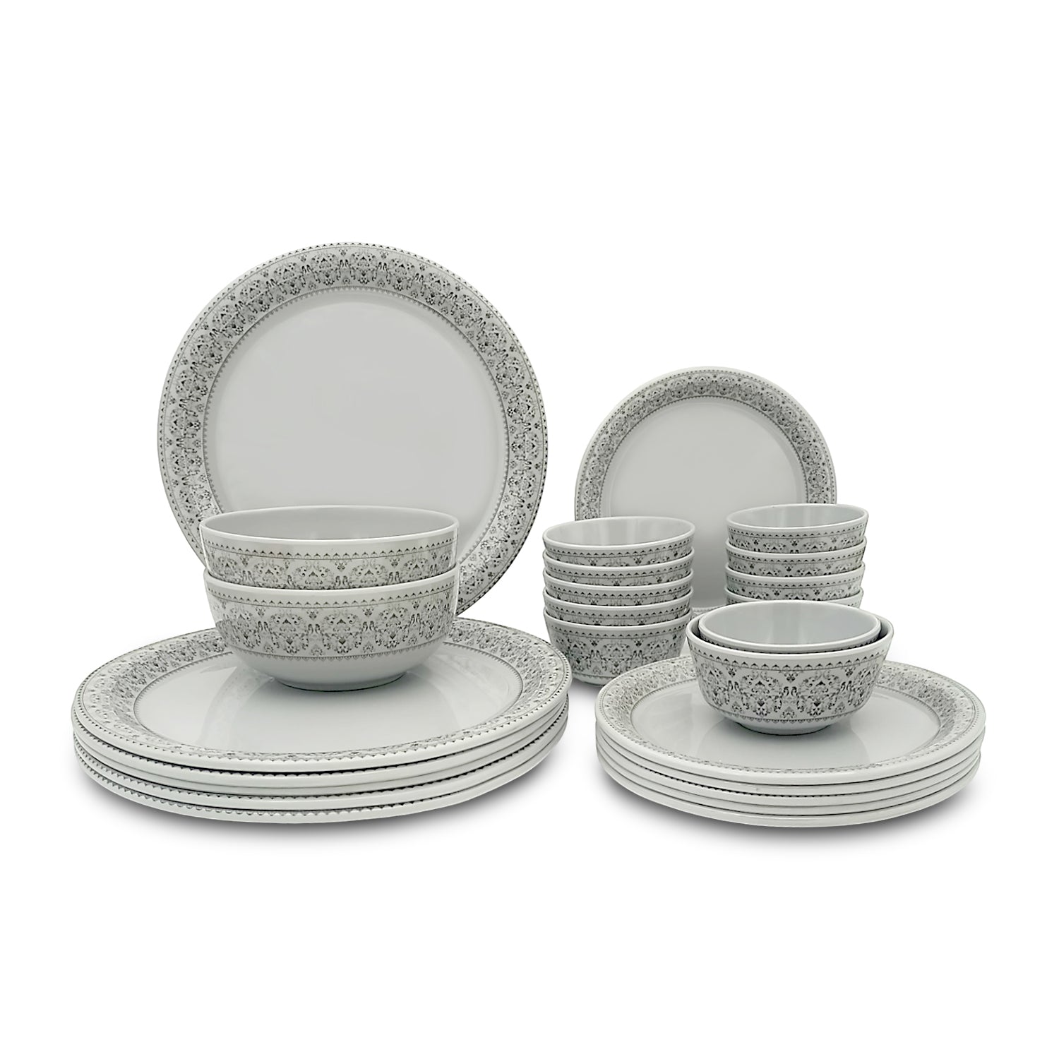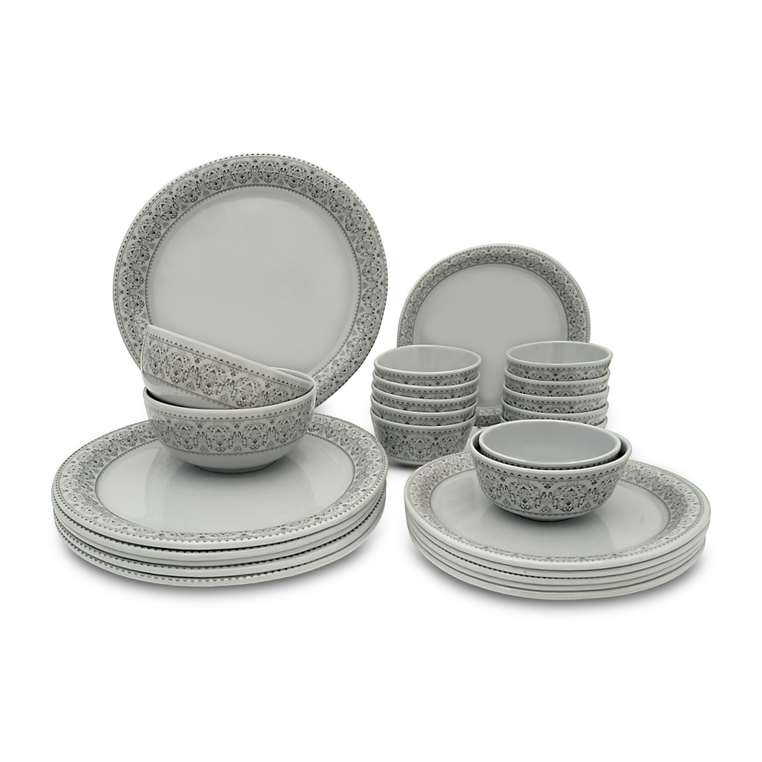 SUPERWARE | Pure Melamine | Dinner Set - Manila Grey Lava | Set Of 26 Pcs. | Stain Free, Glazed Finish