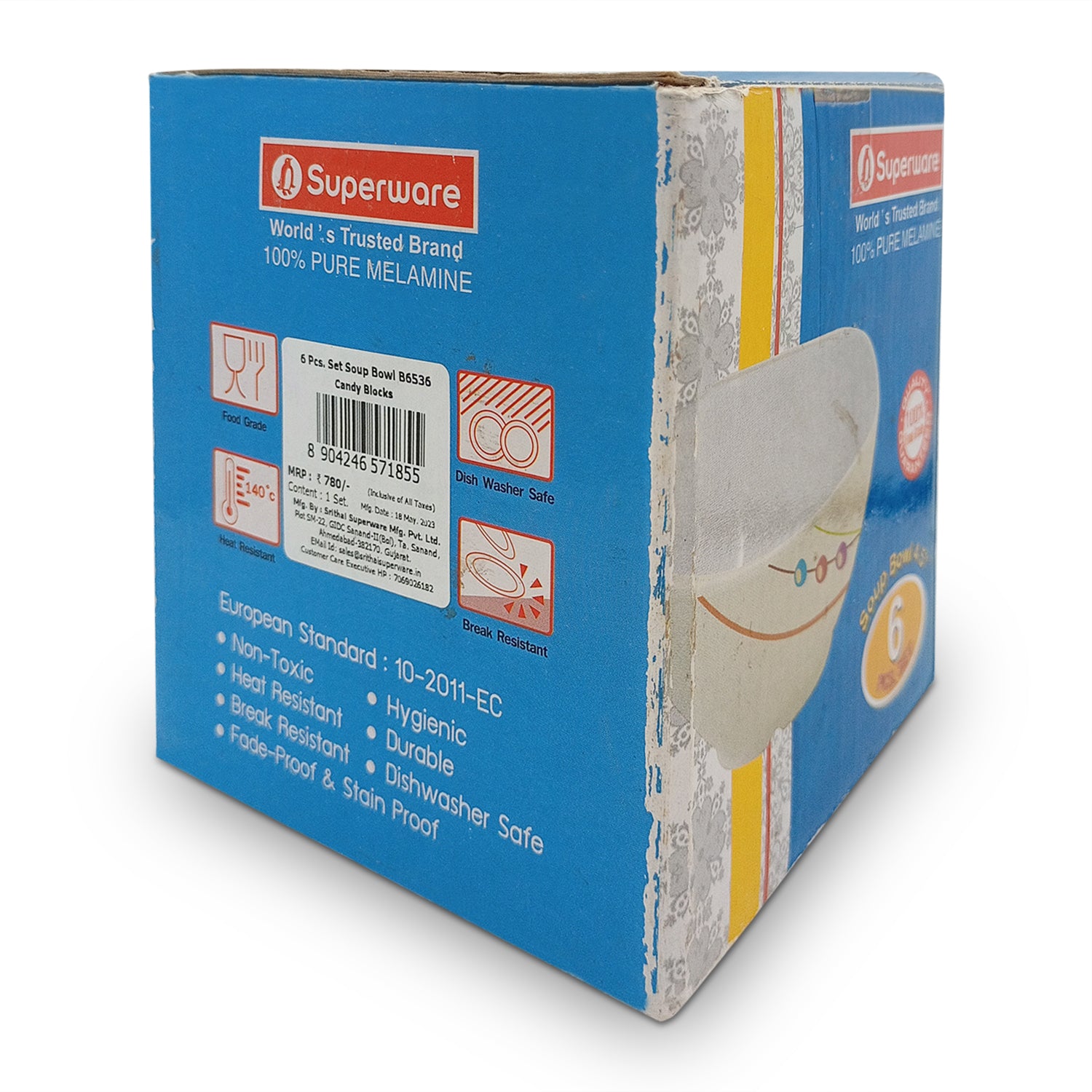 SUPERWARE | Pure Melamine | Katori Set - Candy Blocks (3.75") | 6 Nos.| Stain Free, Glazed Finish