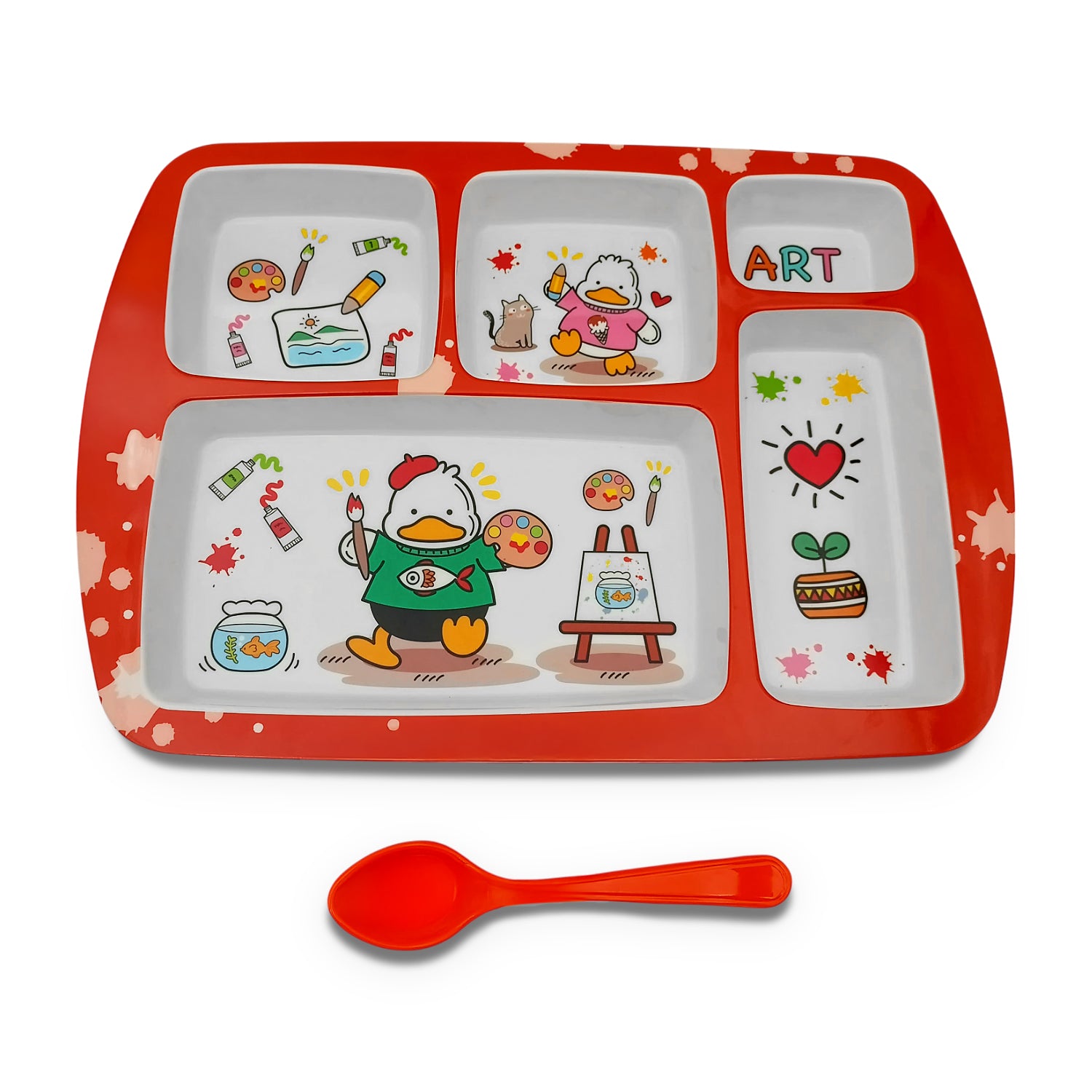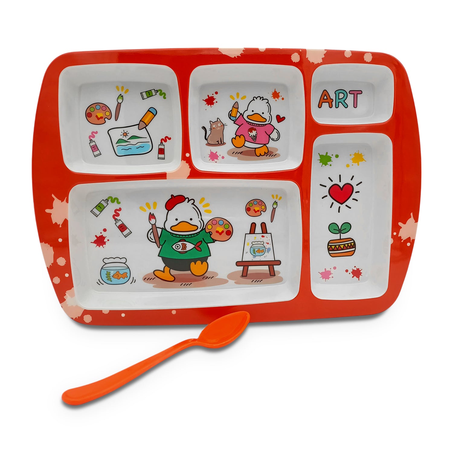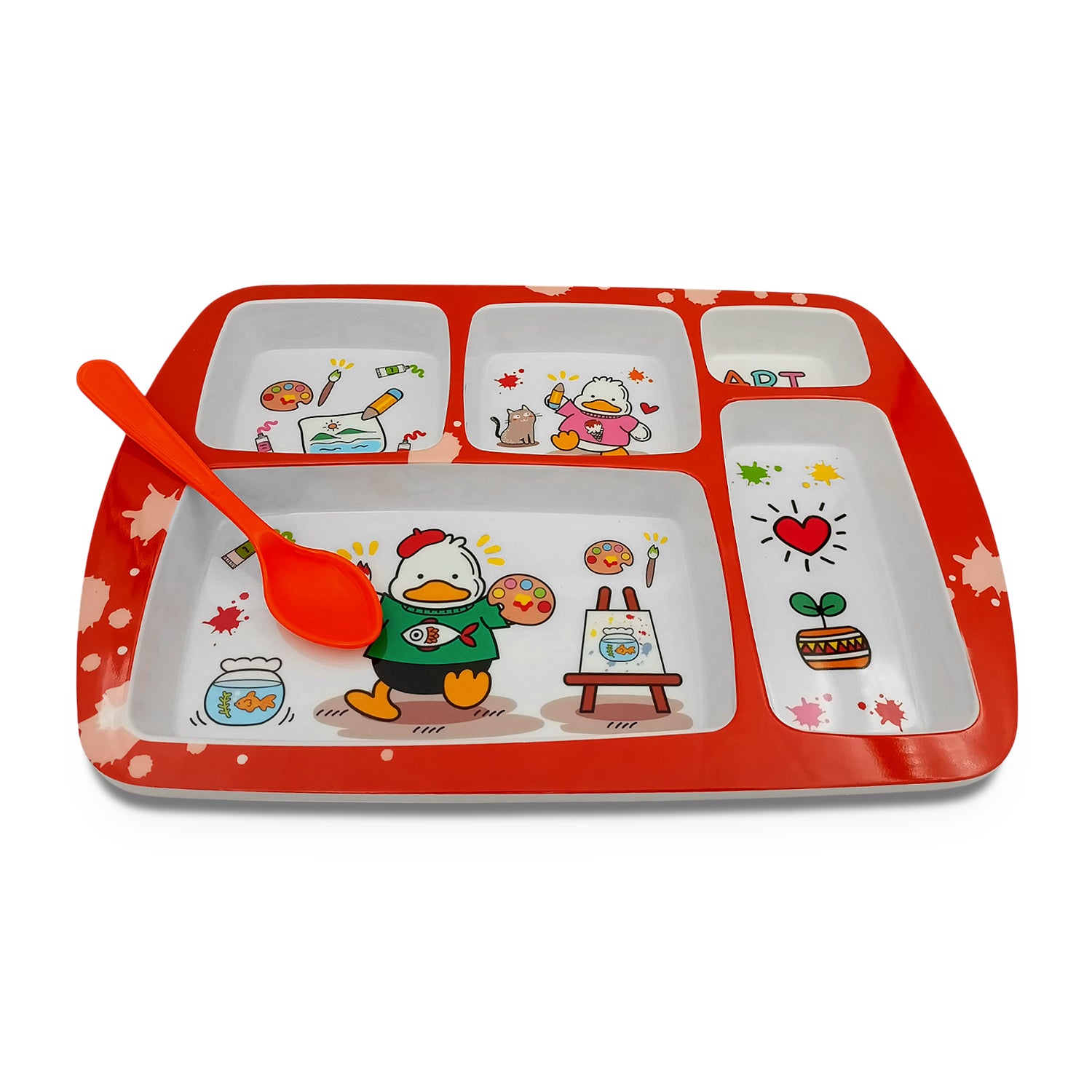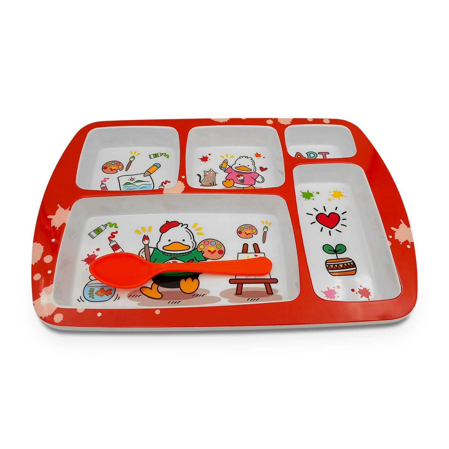SUPERWARE | Pure Melamine | Kid Set - Section Tray - Duck | 2 Pcs. | Stain Free, Glazed Finish
