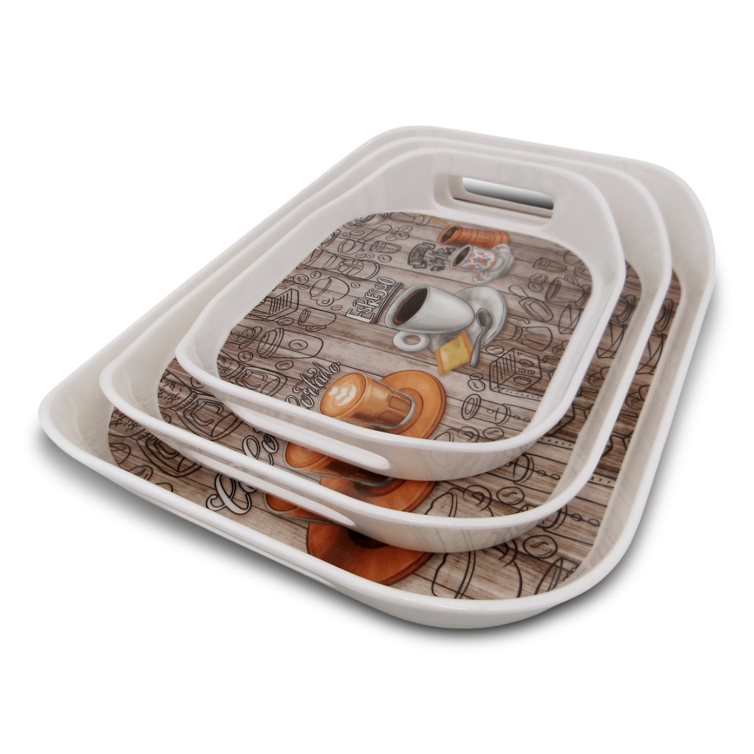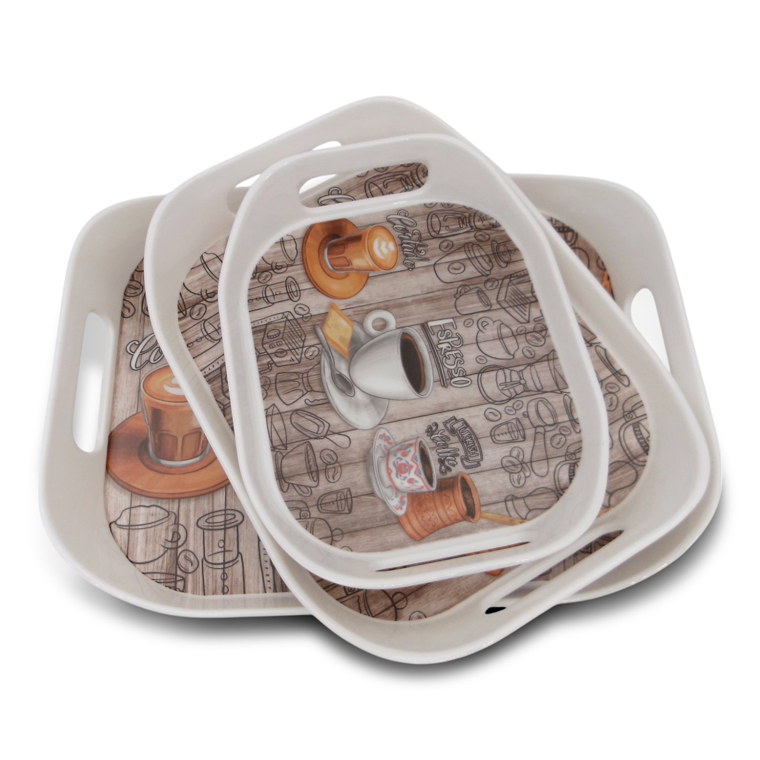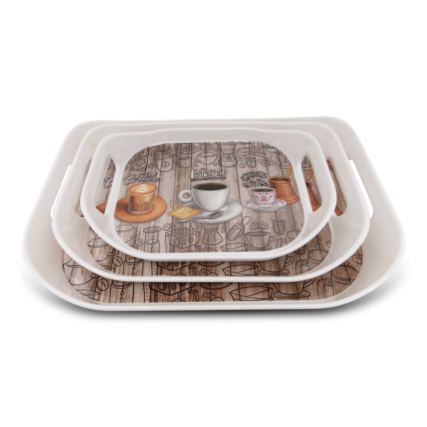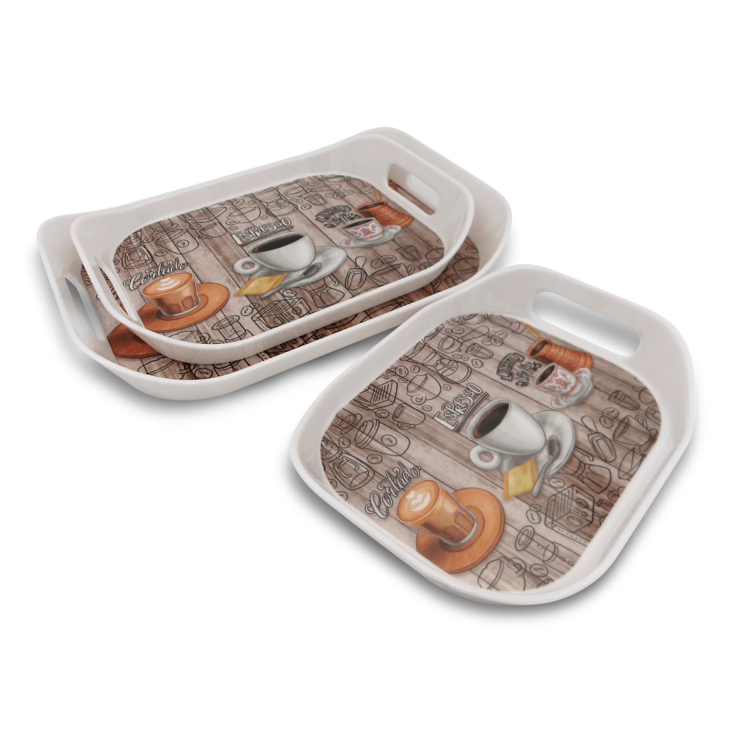SUPERWARE | Pure Melamine | Rando Tray Set - Coffee Club | Set Of 3 Pcs.| Stain Free, Glazed Finish