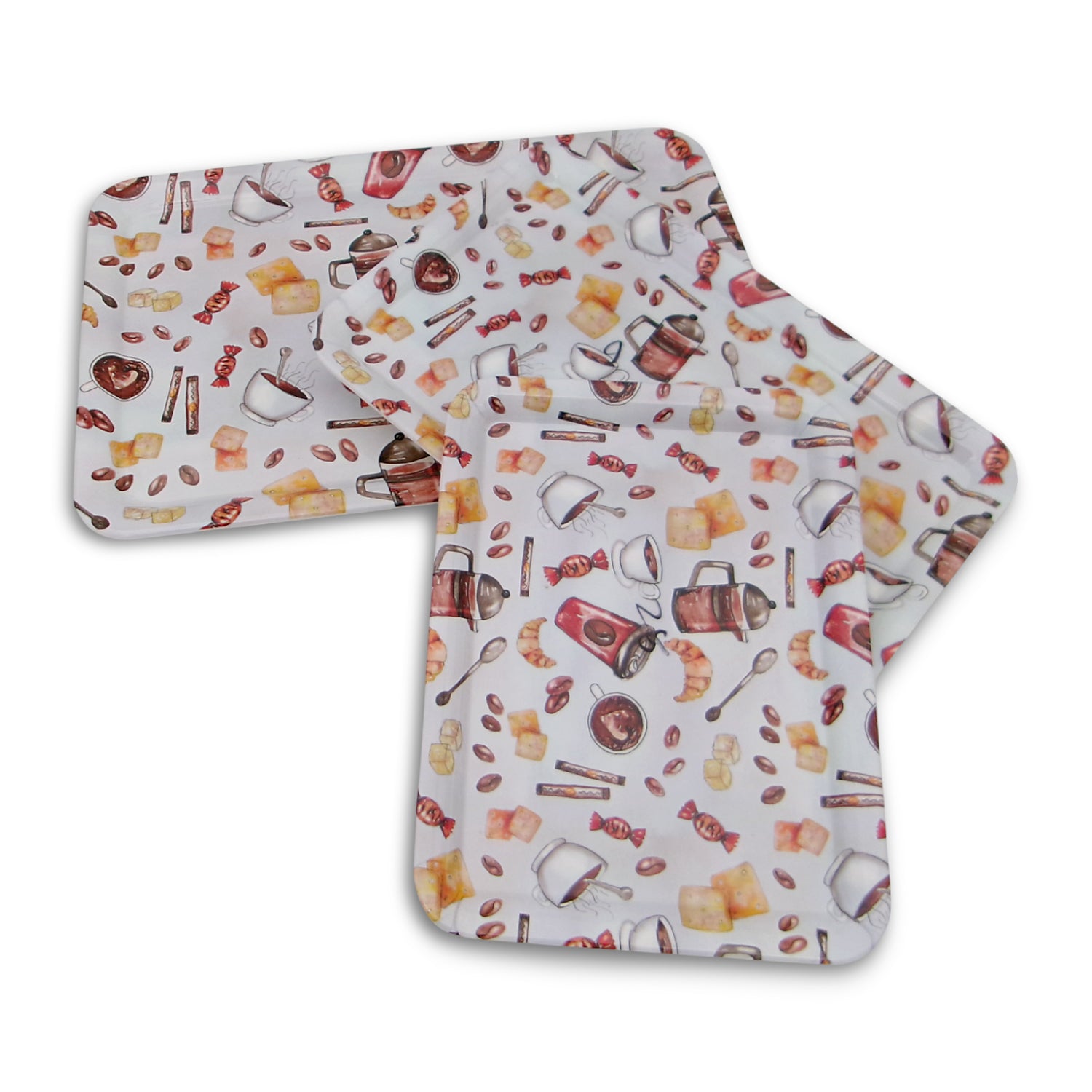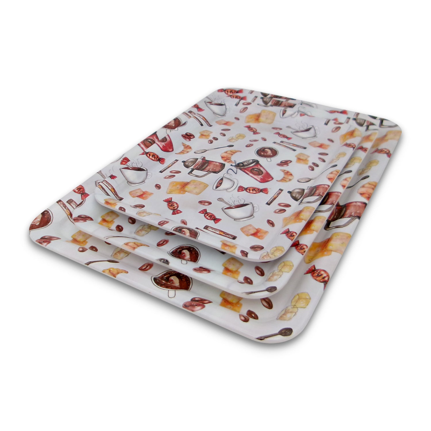 SUPERWARE | Pure Melamine | Retro Tray Set - Coffee Drink | Set Of 3 Pcs.| Stain Free, Glazed Finish