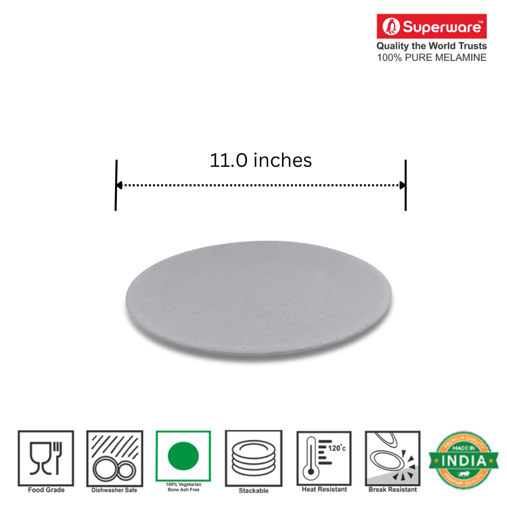 SUPERWARE | Pure Melamine | Round Dinner Plate Set - Jasper (11.0") | 6 Nos. | Stain Free, Glazed Finish