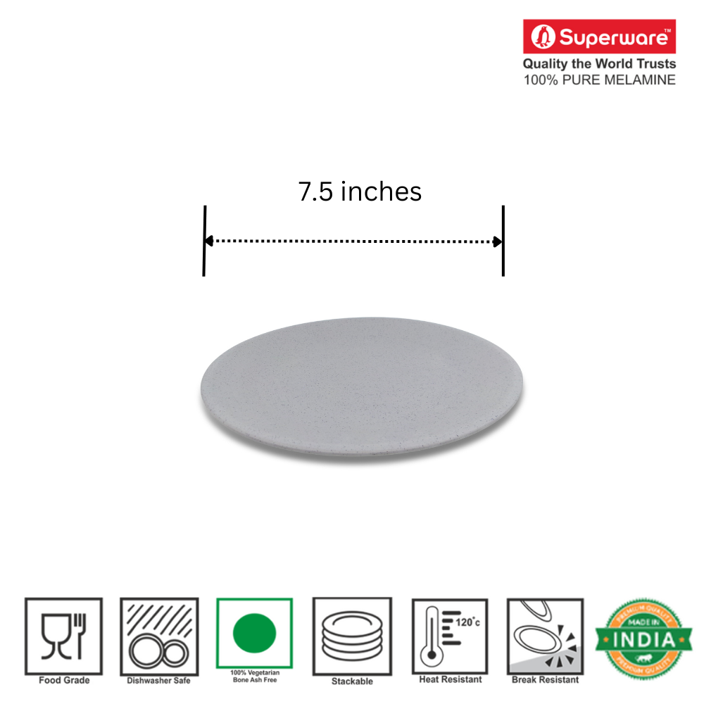 SUPERWARE | Pure Melamine | Round Small Plate Set - Jasper (7.5") | 6 Nos. | Stain Free, Glazed Finish