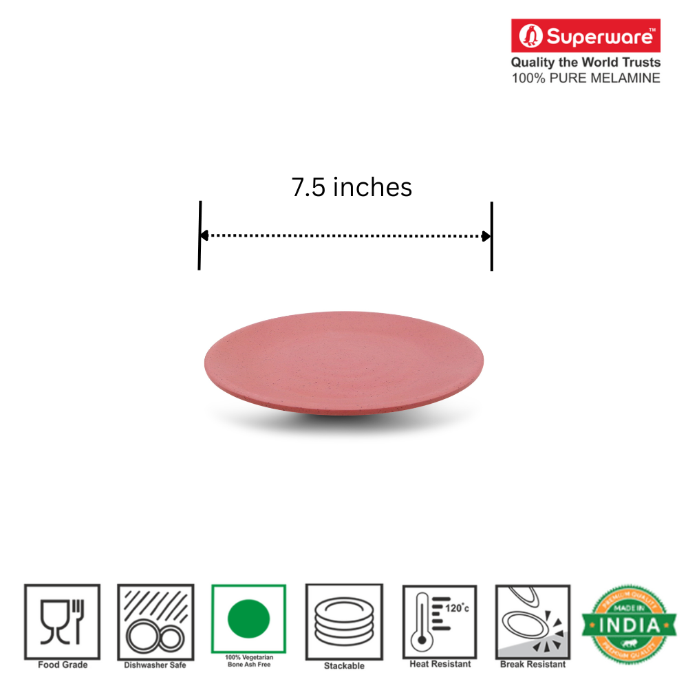 SUPERWARE | Pure Melamine | Round Small Plate Set - Pink Sand (7.5") | 6 Nos. | Stain Free, Glazed Finish