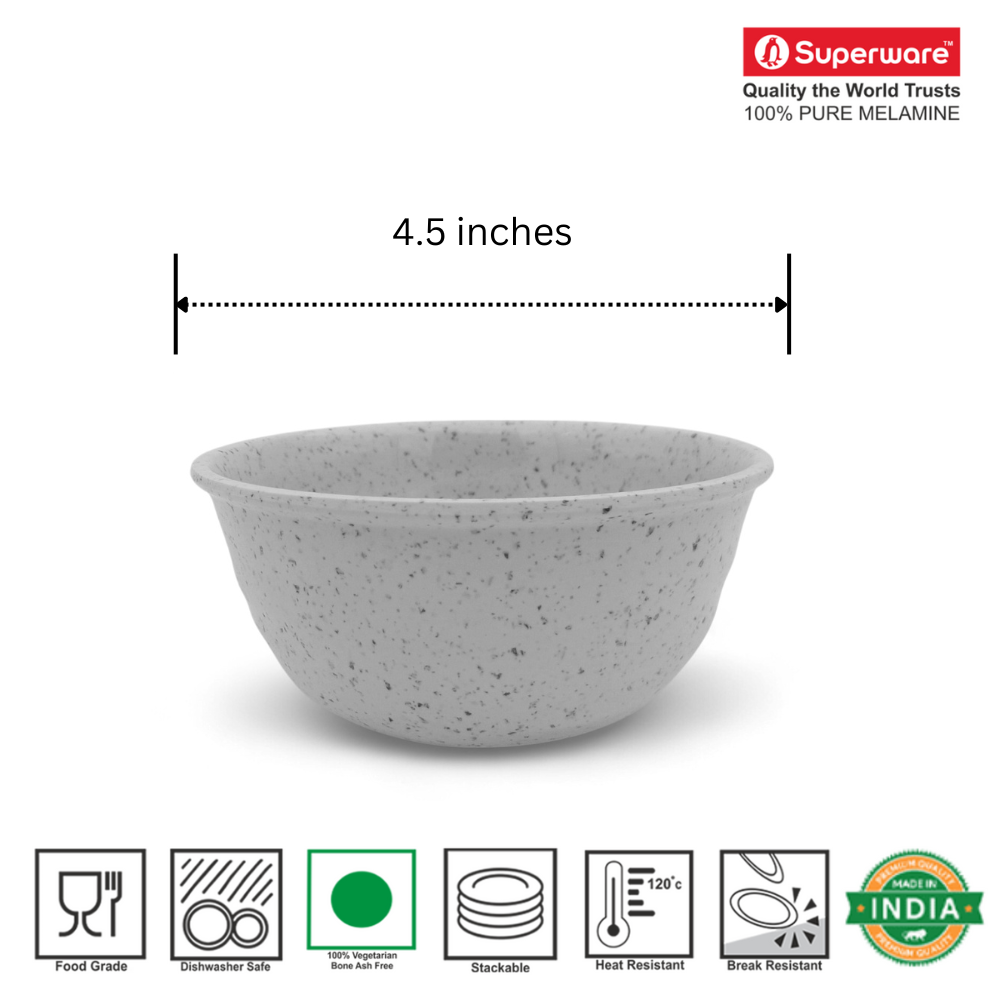 SUPERWARE | Pure Melamine | Round Soup Bowl Set - White Sand (4.5") | 6 Nos. | Stain Free, Glazed Finish