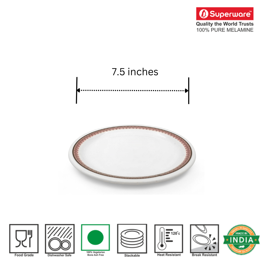 SUPERWARE | Pure Melamine | Small Plate Set - Classic 2 (7.5") | 6 Nos. | Stain Free, Glazed Finish
