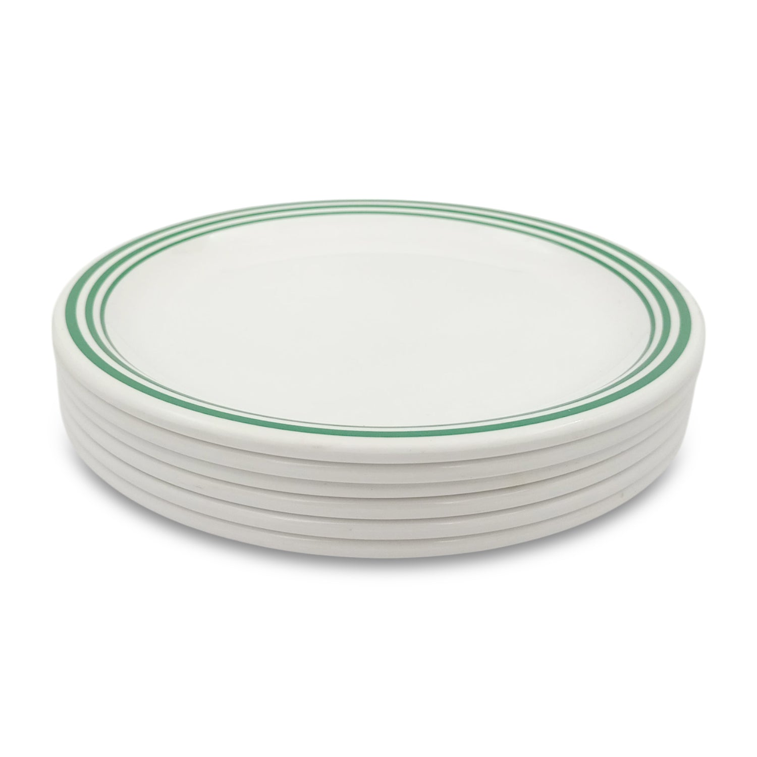 SUPERWARE | Pure melamine | Small Plate Set - Green Lines (7.5") | 6 Nos. | Stain Free, Glazed Finish