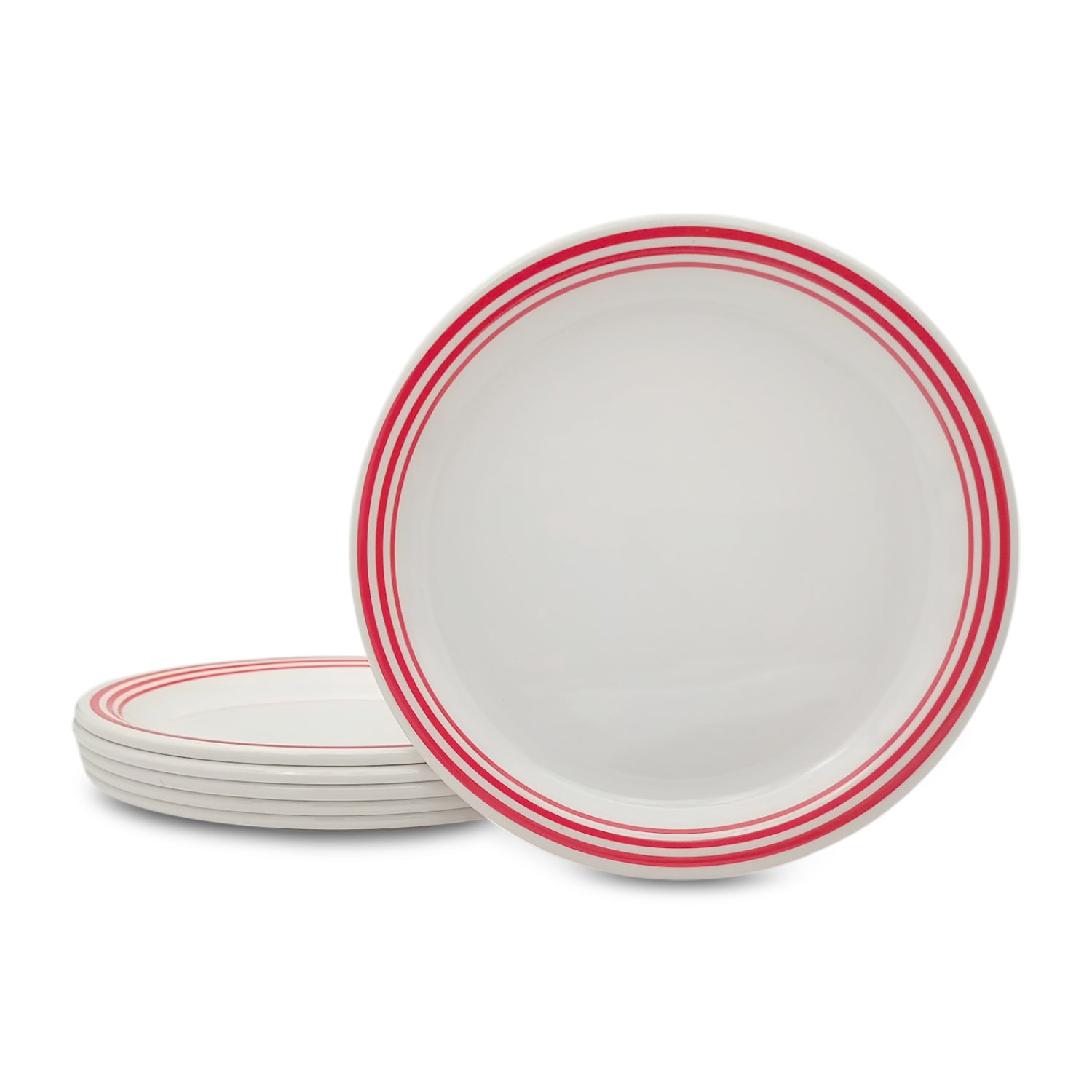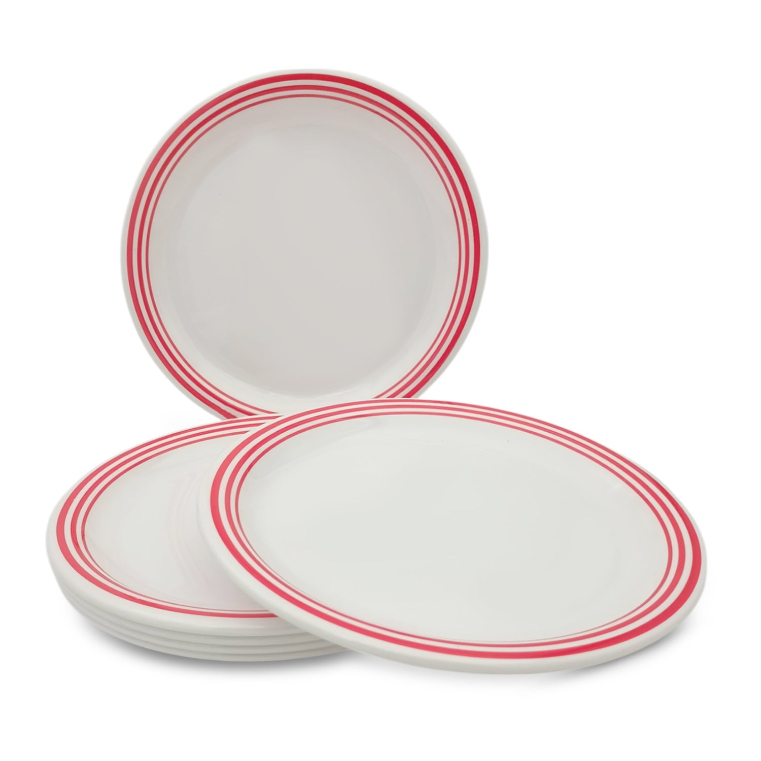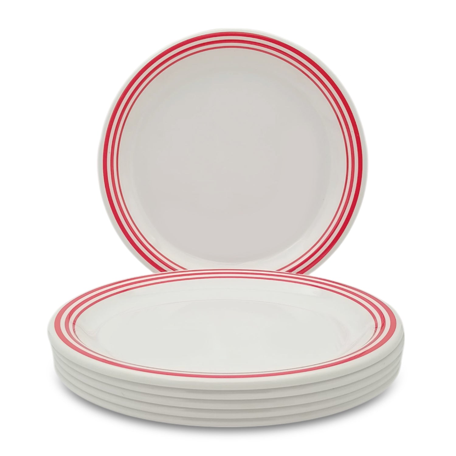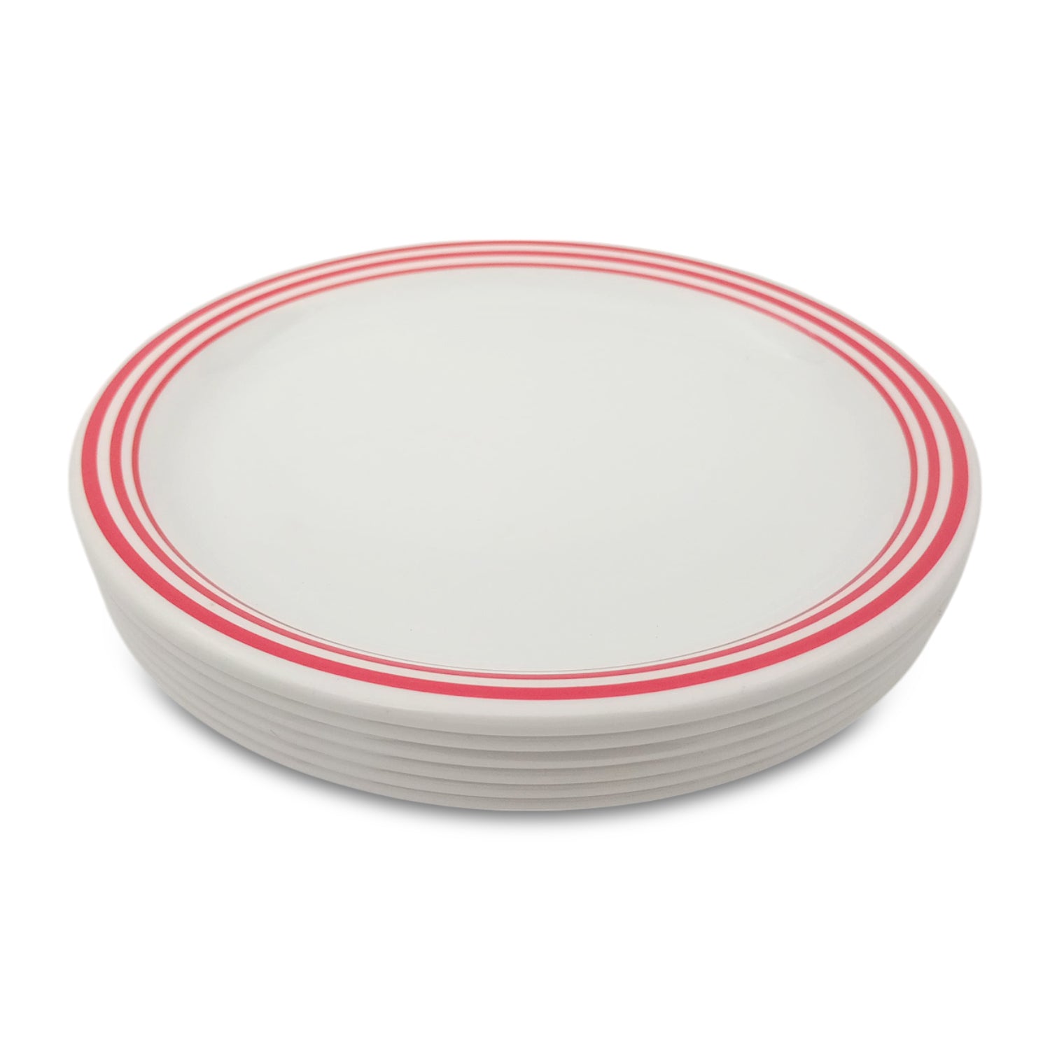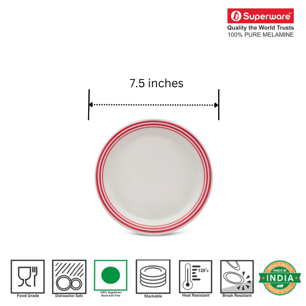 SUPERWARE | Pure melamine | Small Plate Set - Red Lines (7.5") | 6 Nos. | Stain Free, Glazed Finish