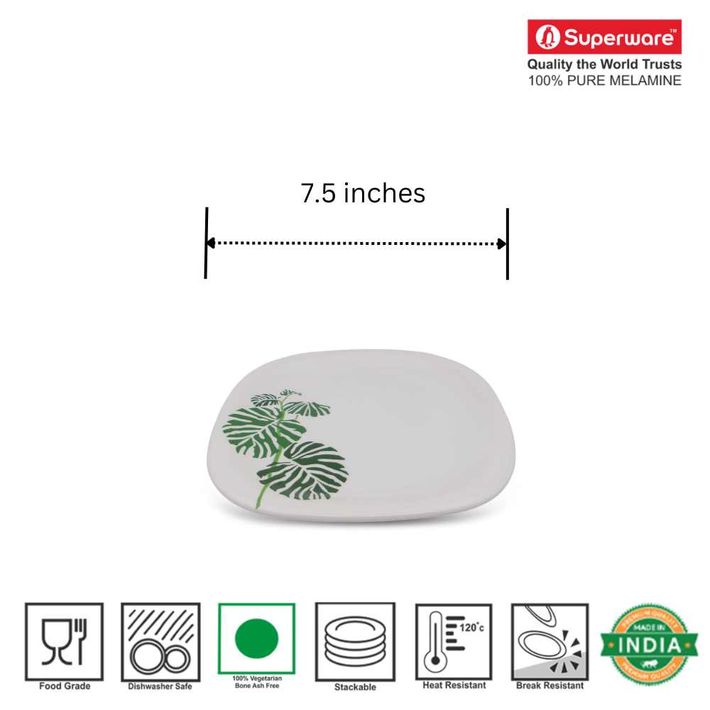 SUPERWARE | Pure Melamine | Small Plate Set - Swiss Leave (7.5") | 6 Nos. | Stain Free, Glazed Finish