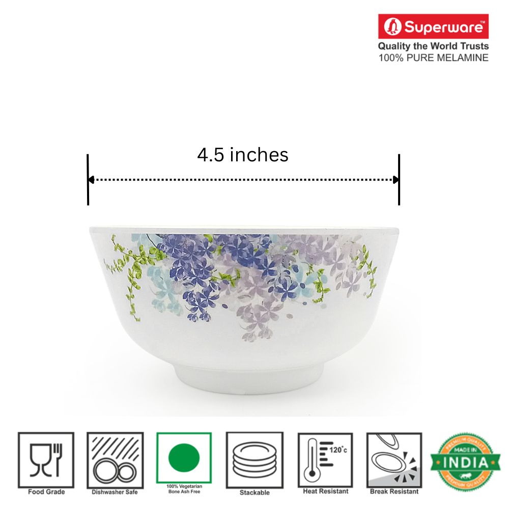 SUPERWARE | Pure Melamine | Soup Bowl Set - Monet (4.5") | 6 Nos.| Stain Free, Glazed Finish