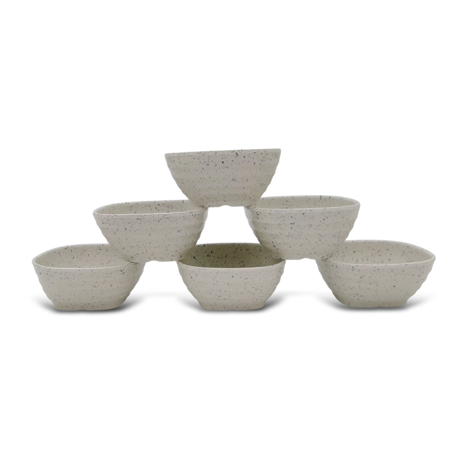 SUPERWARE | Pure Melamine | Square Bowl Set - White Sand 4" | 6 Nos. | Stain Free, Glazed Finish