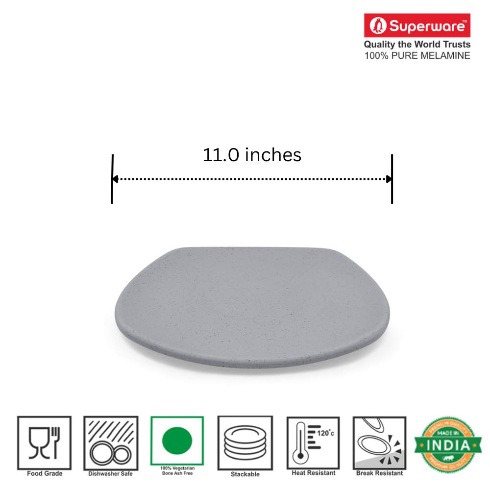SUPERWARE | Pure Melamine | Square Dinner Plate Set - Jasper (11.0") | 6 Nos.| Stain Free, Glazed Finish