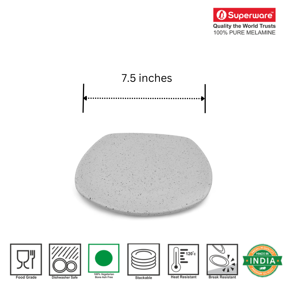 SUPERWARE | Pure Melamine | Square Small Plate Set - White Sand (7.5") | 6 Nos. | Stain Free, Glazed Finish