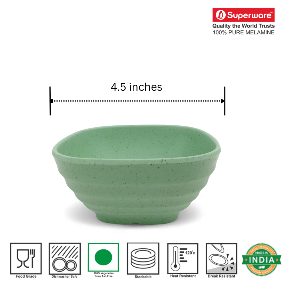 SUPERWARE | Pure Melamine | Square Soup Bowl Set - Green Sand (4.25") | 6 Nos. | Stain Free, Glazed Finish