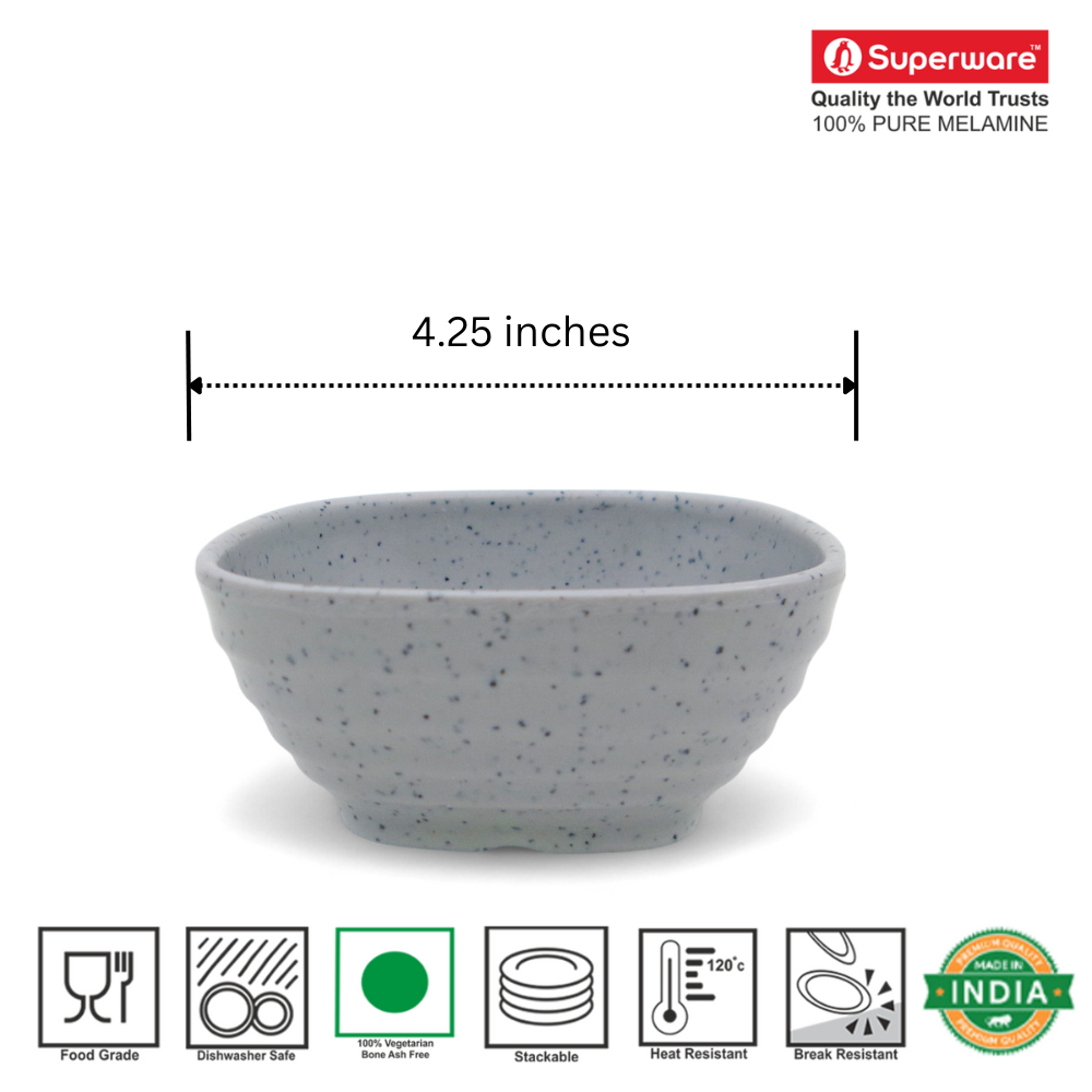 SUPERWARE | Pure Melamine | Square Soup Bowl Set - Jasper (4.25") | 6 Nos. | Stain Free, Glazed Finish