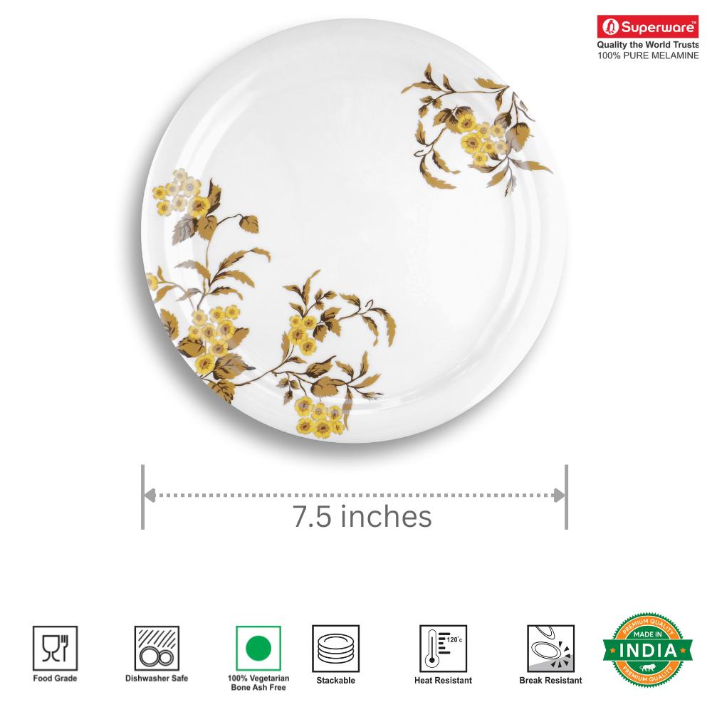 SUPERWARE | Pure melamine | Small Plate Set - FRENCH ROSE (7.5") | 6 Nos. | Stain Free, Glazed Finish