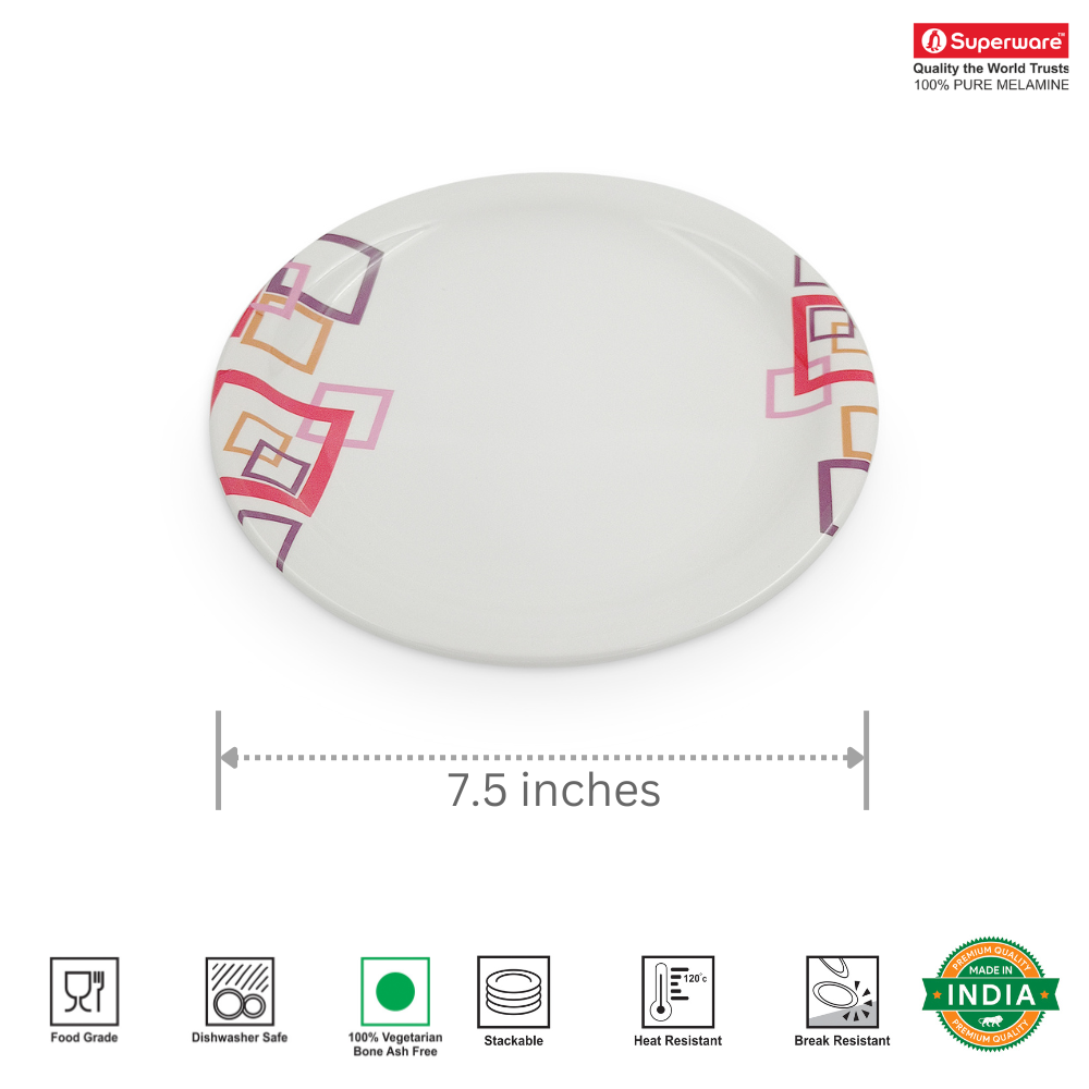SUPERWARE | Pure melamine | Small Plate Set - INDIAN SQUARE (7.5") | 6 Nos. | Stain Free, Glazed Finish