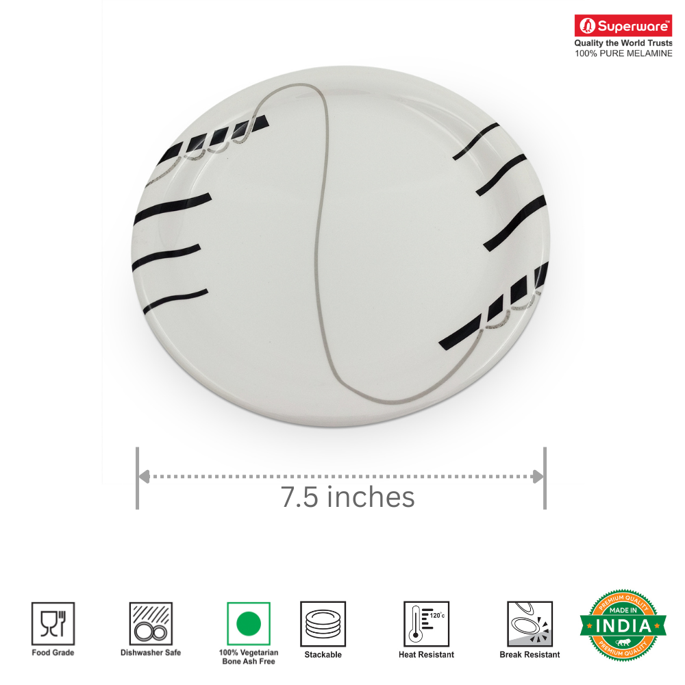 SUPERWARE | Pure melamine | Small Plate Set - STRIP & ROPES (7.5") | 6 Nos. | Stain Free, Glazed Finish