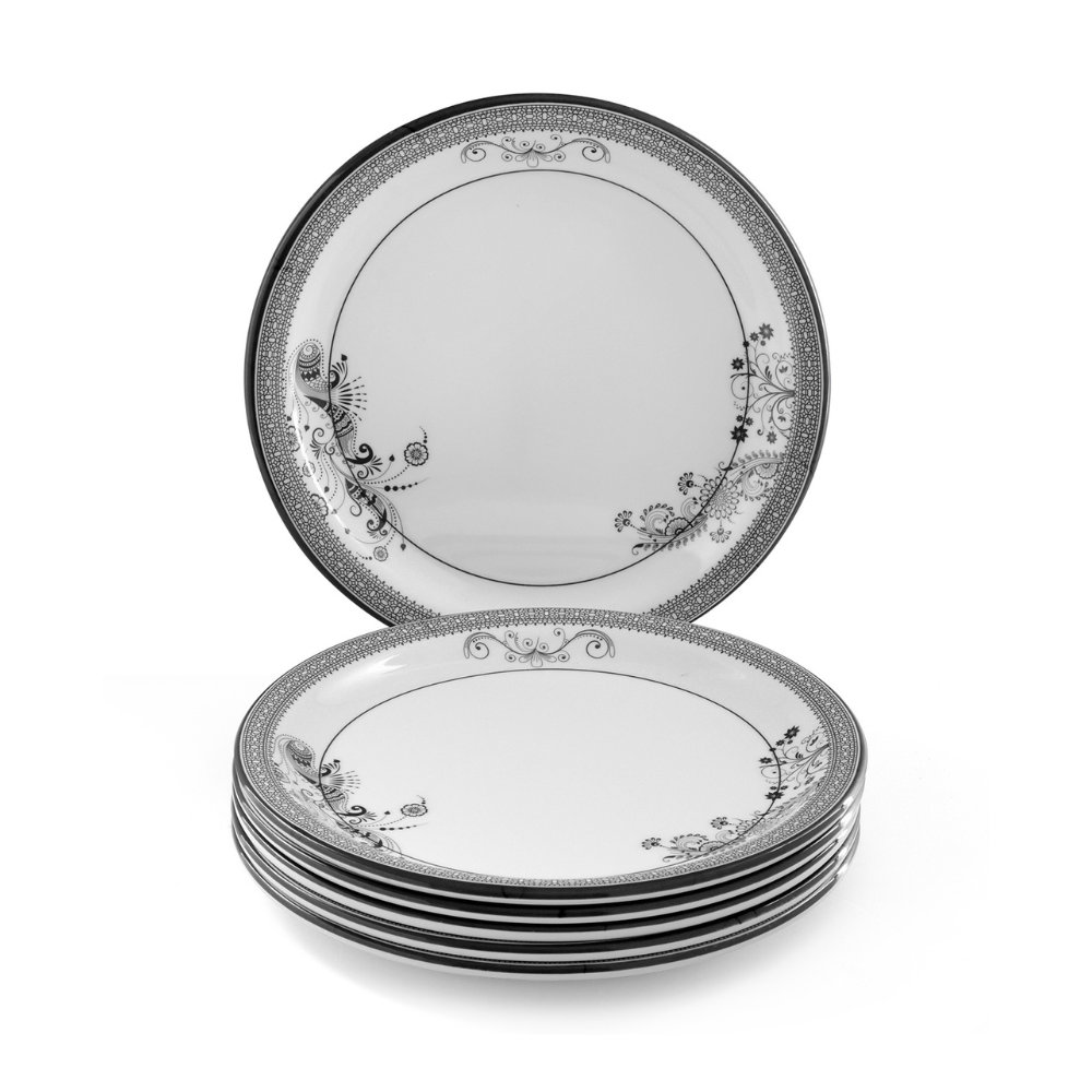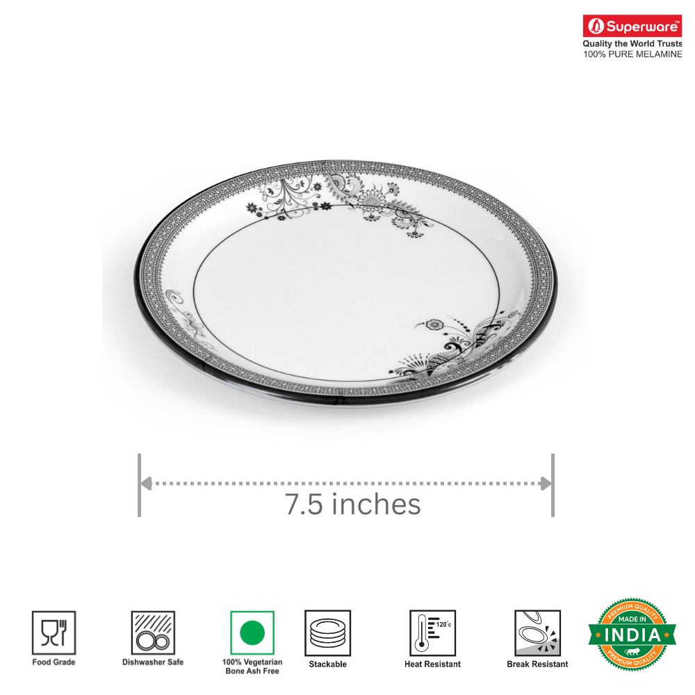 SUPERWARE | Pure Melamine | Small Plate Set - SILVER LACE (7.5") | 6 Nos. | Stain Free, Glazed Finish
